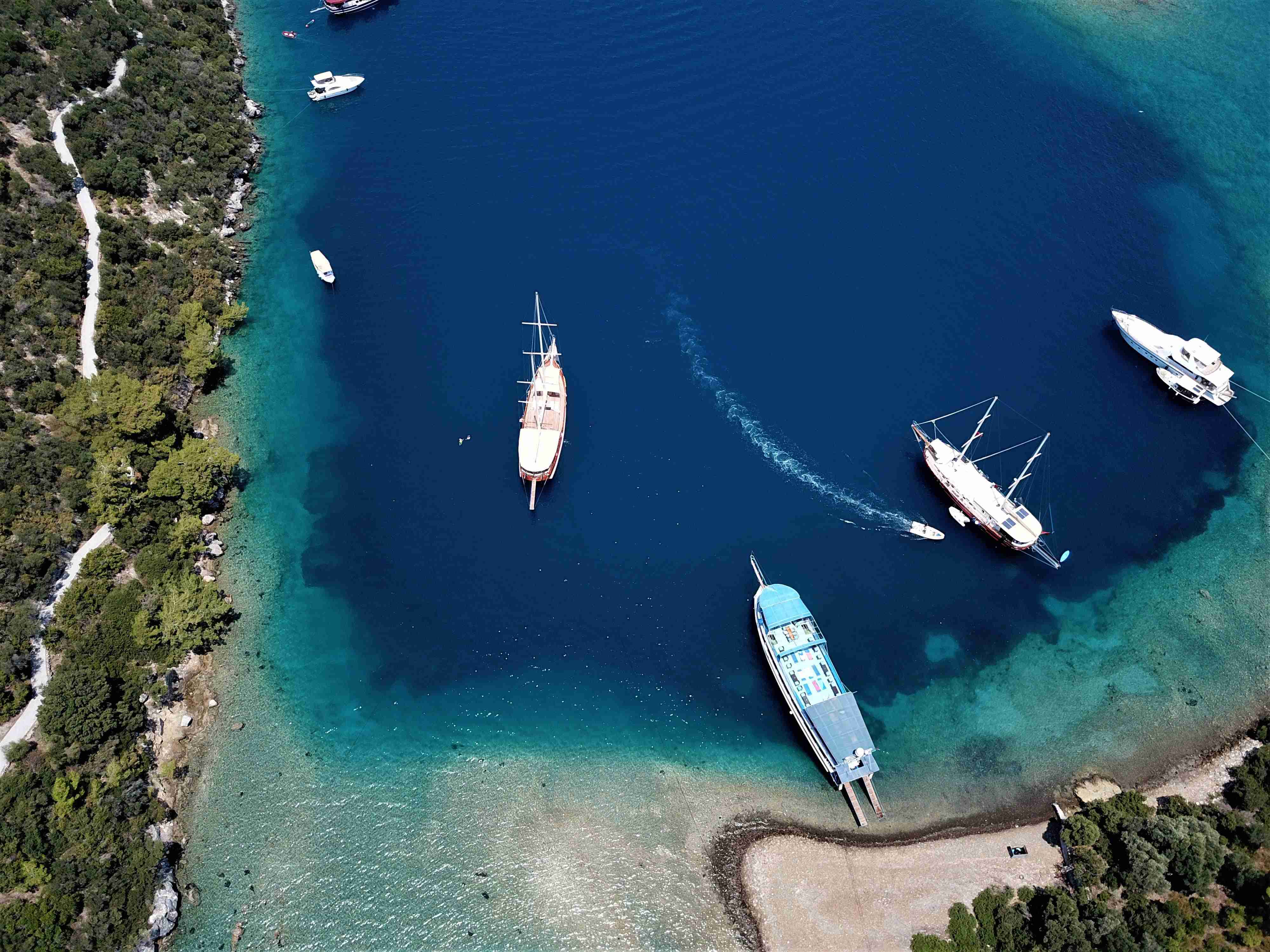 - Всеки ден яхтата се мести между 2 или 3 девствени затворени заливчета с кристално чисти води, в които може да плувате сутрин, обед и вечер. Във всеки залив сте закотвени на разстояние до 10-15 метра от брега, което може да преодолеете с плуване.