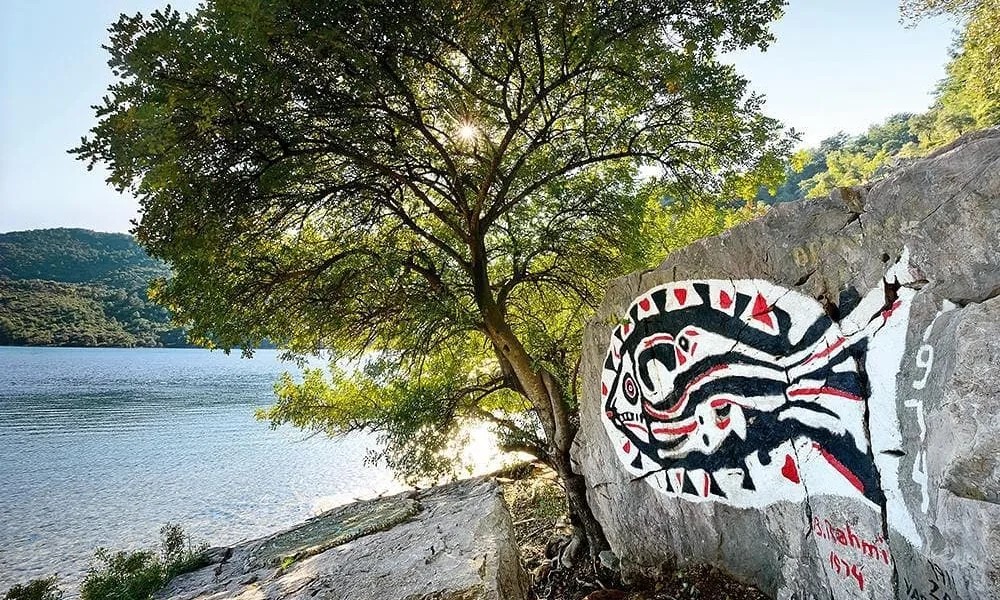 Докато можете да вдишате свежия морски въздух и да бъдете едно цяло с природата, можете също така да видите отблизо рибата, нарисувана върху тази скала от Бедри Рахми Еюбоглу. Тази снимка се превърна в рамка за снимки за всеки, който идва в залива.