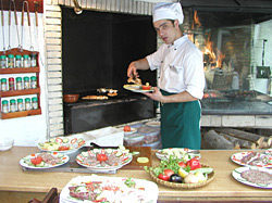 Ресторанта е със сто места, лятна градина, барбекю и музика на живо. Ценителите на добрата кухня могат да се насладят на богат избор от специалитети и класна селекция от вина и напитки. Ресторанта е подходящо място за семейни празници, официални тържества, делови срещи и коктейли.