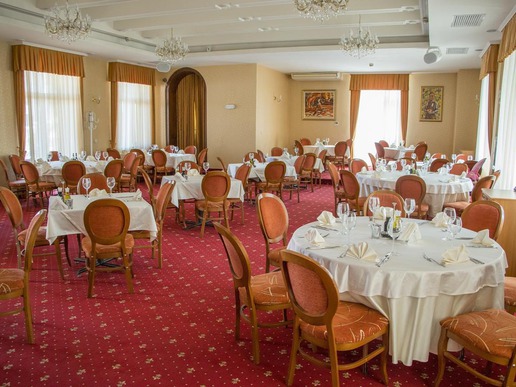 На Ваше разположение е Ресторант Двореца /180 места/ и лятна градина /120 места/, които ще ви спечелят с интериорът и стилът, предпоставка за едно спокойно и уютно гостуване.