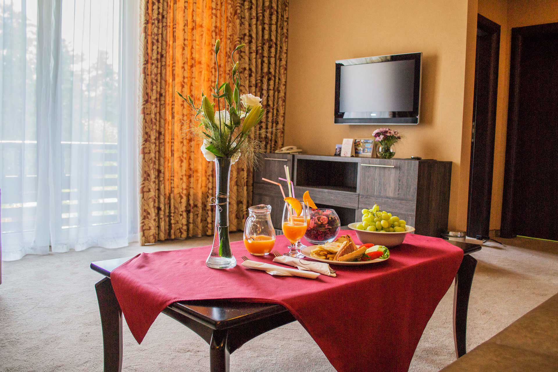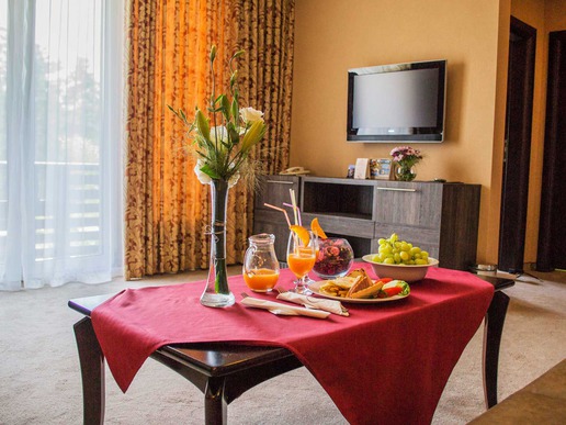 Спа хотел Двореца е внушителна пет етажна сграда, която има 109 модерно обзаведени стаи и апартаменти, единични и двойни.Удобства в Двореца: