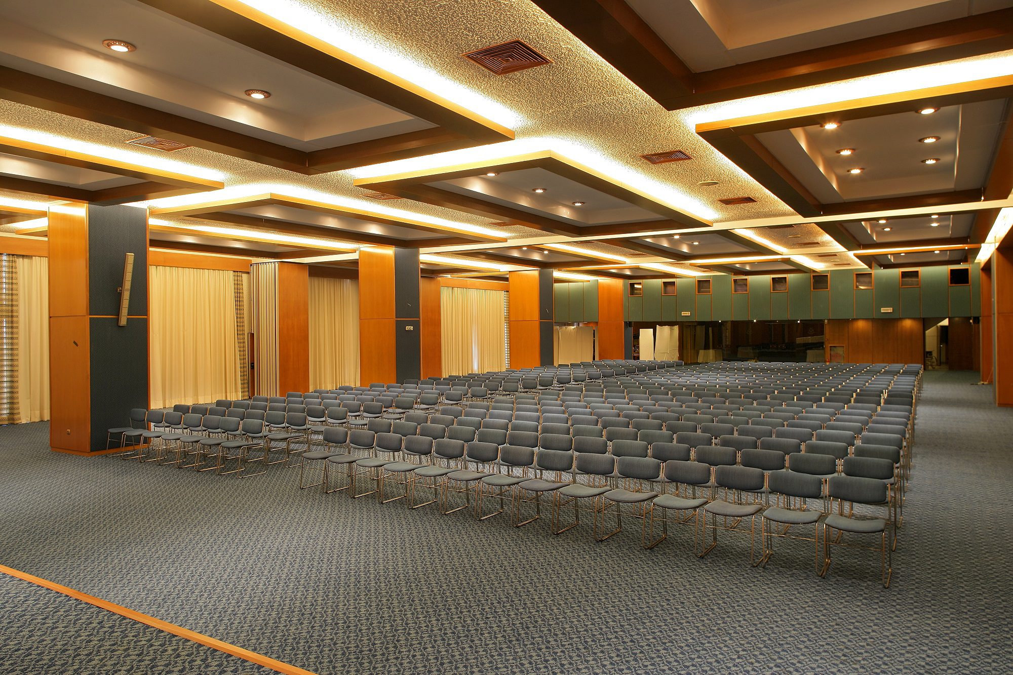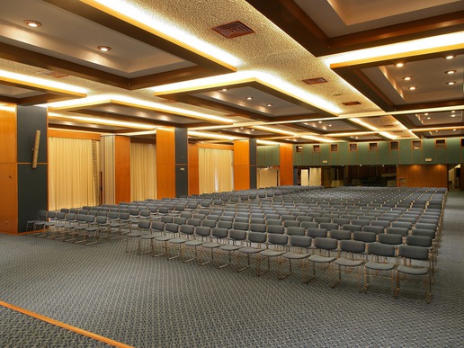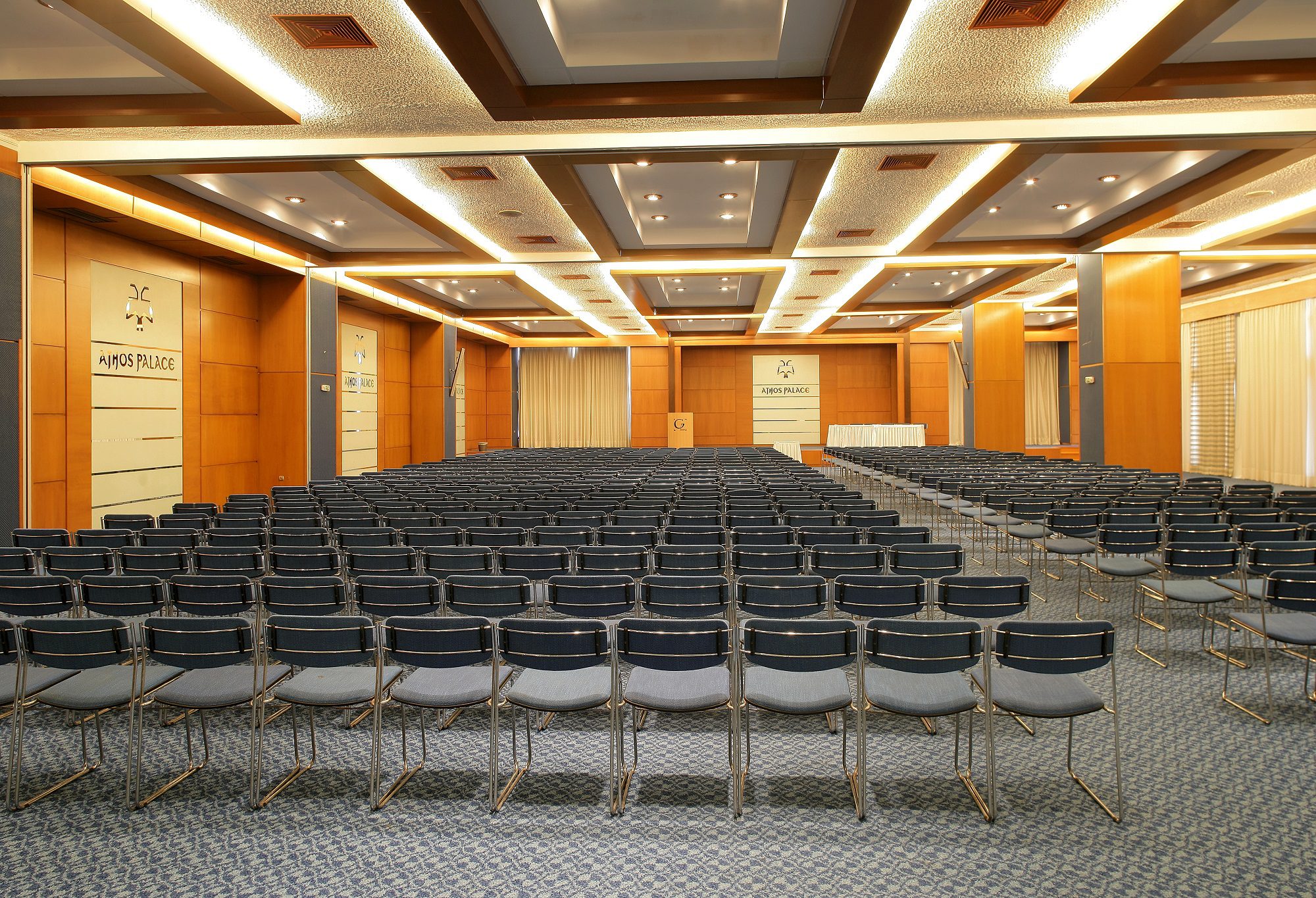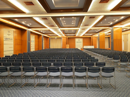 Просторните конферентни зали предлагат много възможности за избор от големи и малки заседателни зали до зали за коктейл събирания. Основната зала на хотел Athos Palace е наречена Императрица Теодора и може да побере повече от 1000 души. Тя е напълно оборудвана с най-съвременна аудио-визуална техника, а залата има възможност да се раздели на две по-малки части. Като цяло, хотел Athos Palace може да предложи повече от 1,000 кв. м. изложбена площ за покриване на всички фирмени нужди.