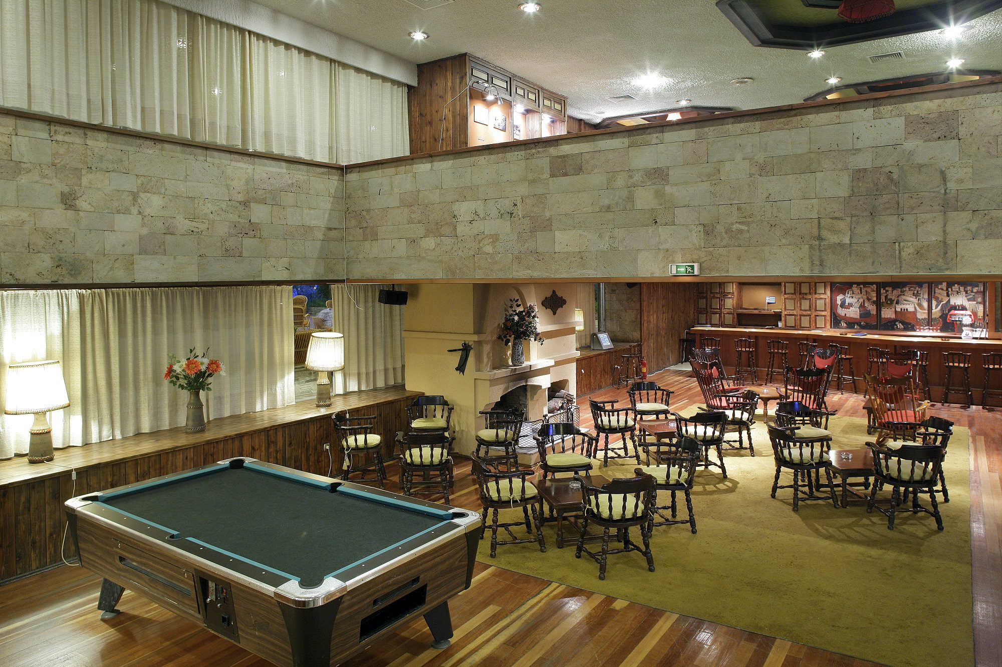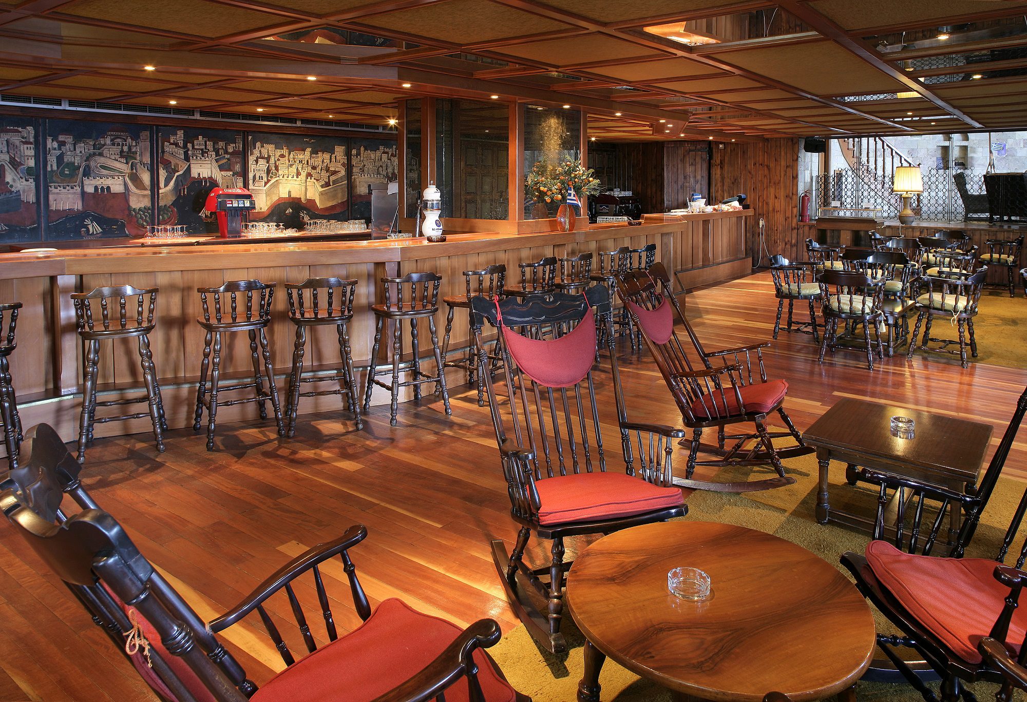 Американският бар е основния бар на хотела Athos Palace, който се намира във фоайето и е идеалното място да се насладите на едно питие с приятели или семейството играейки билярд или просто да се отпуснете слушайки музика на живо. Той е с тераса с изглед към градините на хотела и живописната малка черква и предлага голямо разнообразие от коктейли и напитки.