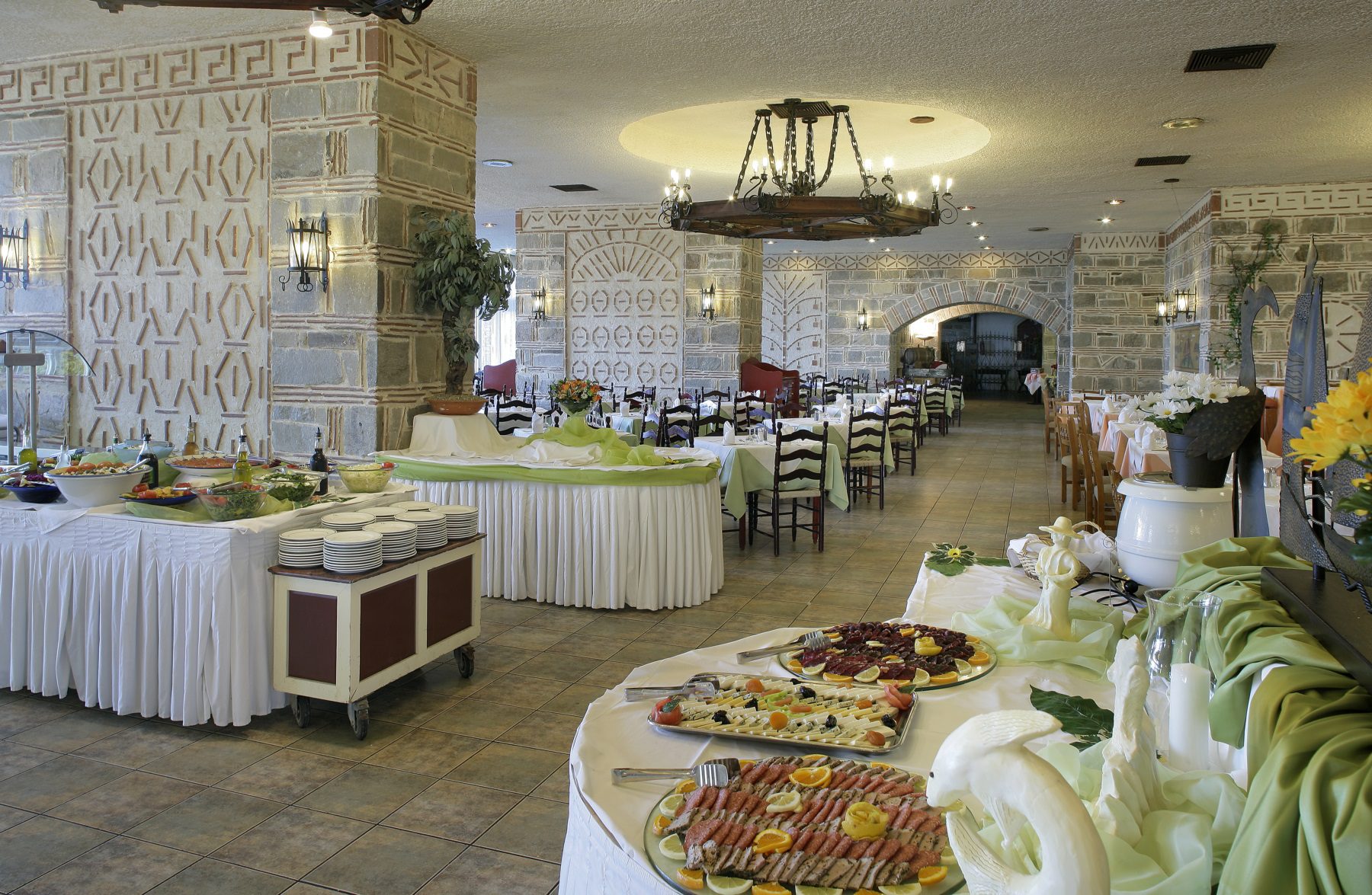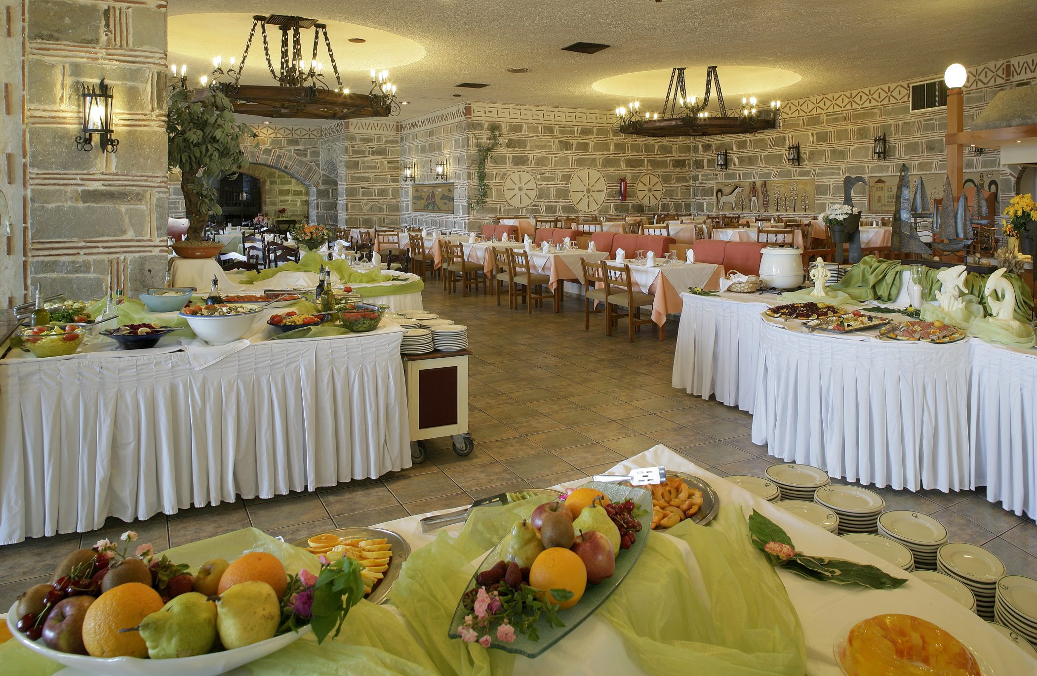 Хотелът Athos Palace Hotel разполага с 3 ресторанта - основен, италиански, ресторант self service и механа Akroyiali.