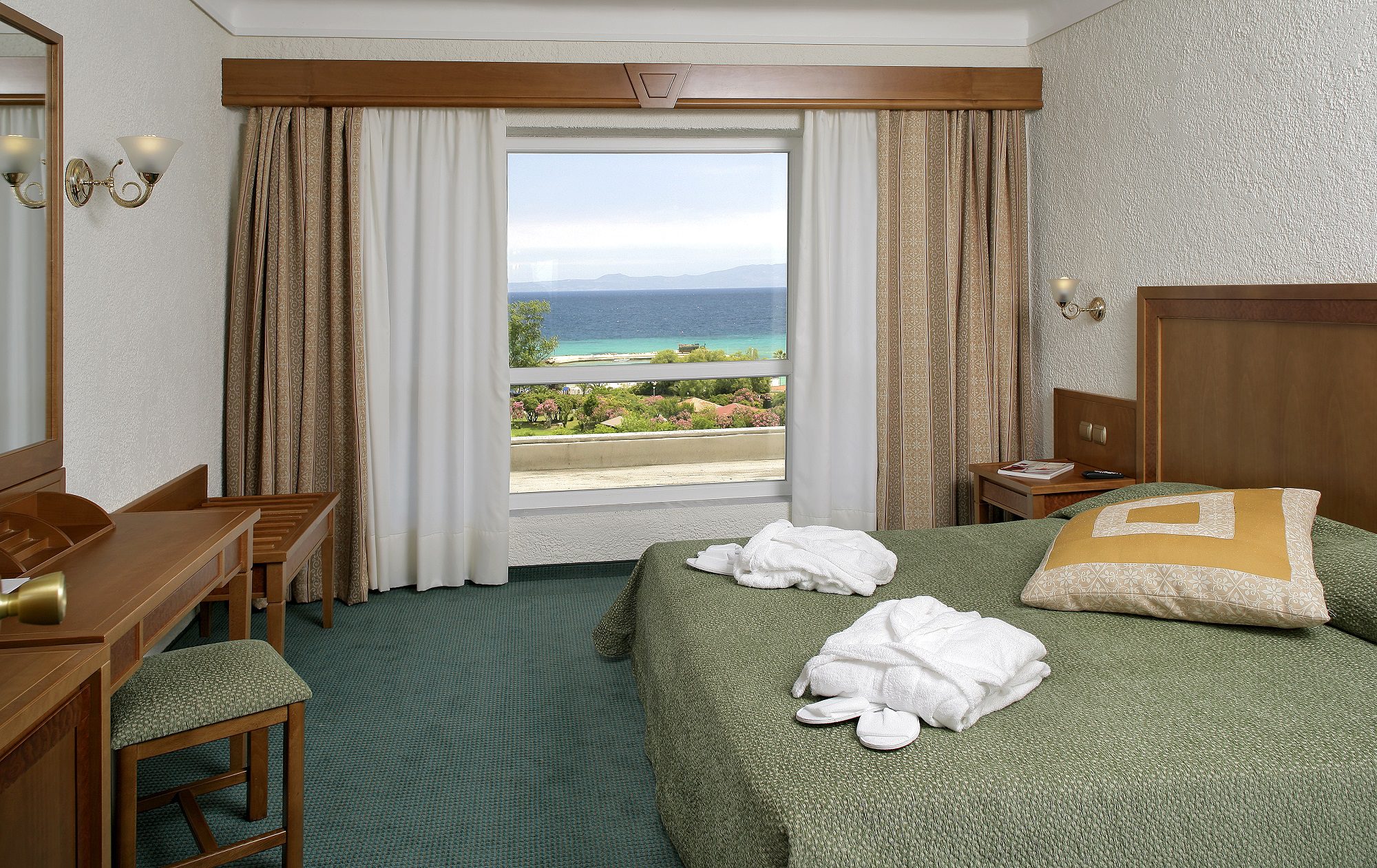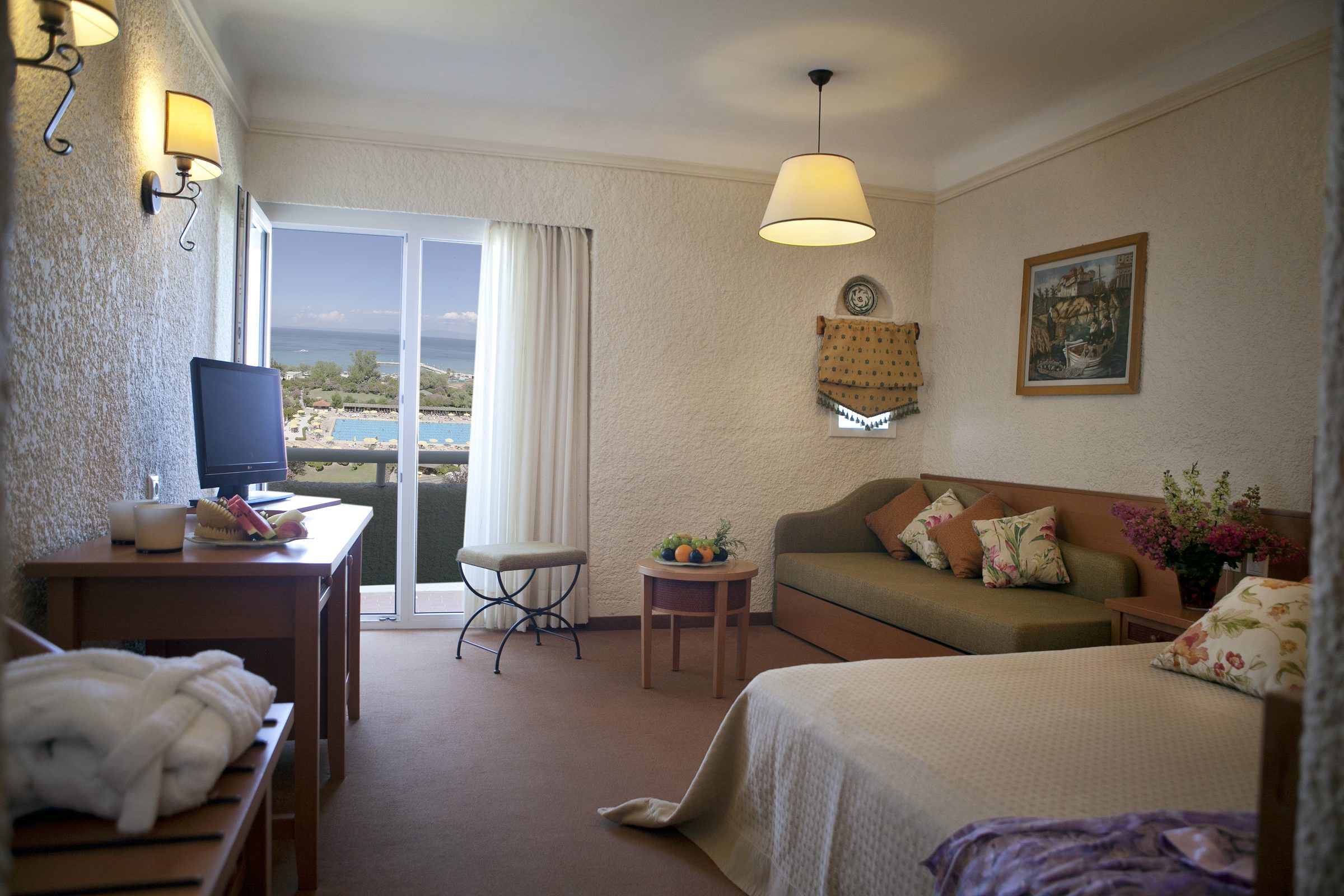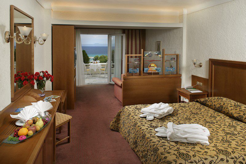 Стаите с изглед към морето на Athos Palace предоставят прекрасна панорамна гледка към басейна с олимпийски размери и Егейско море. Всички стаи са просторни, елегантно обзаведени и напълно оборудвани, за да отговорят на всички ваши изисквания. Дървото и земните цветове са основните елементи предлагащи класически интериор. Стаите с гледка към планината са просторни, елегантни, класически обзаведени и разполагат с уникални и незабравими панорамни гледки към тучни градини и борови хълмове. В Athos Palace малките апартаменти са мезонети. В първото ниво ще намерите просторен хол, обзаведен с мека мебел , която води до голяма самостоятелна тераса , където можете да се отпуснете и да се насладите на прекрасната гледка. Чрез вътрешно стълбище имате достъп до по-горното ниво, където спалнята е с двойно легло и баня. В малките апартаменти могат да се настанят до 4 човека. В апартаментите Супериор на първо ниво ще намерите просторен хол, обзаведен с мека мебел и бюро. Отпуснете се на голямата тераса и се насладете на прекрасната гледка към Егейско море. На на второ ниво чрез вътрешно стълбище се намира спалня обзаведена с вкус с двойно легло и баня.