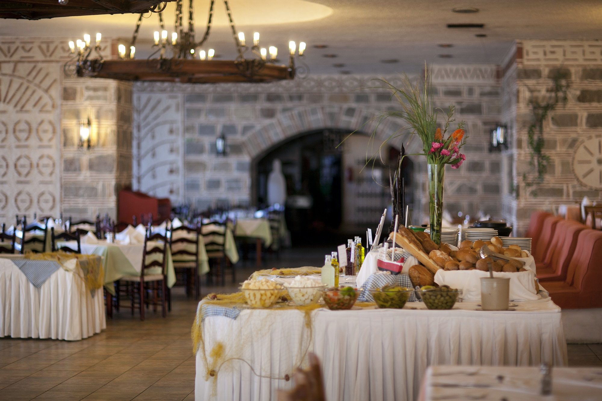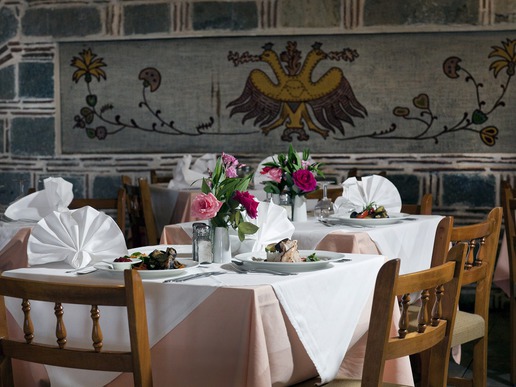 Основният ресторант на хотел Athos Palace е стилен и комфортен, с просторна открита площ, отворен за закуска, обяд и вечеря предлагащ както традиционни гръцки така и международни специалитети. Ресторантът предлага специални ястия за деца, диабетици и вегетарианци. Dress Code Господата трябва да носят дълги панталони в ресторанта на хотела по време на вечерните часове.