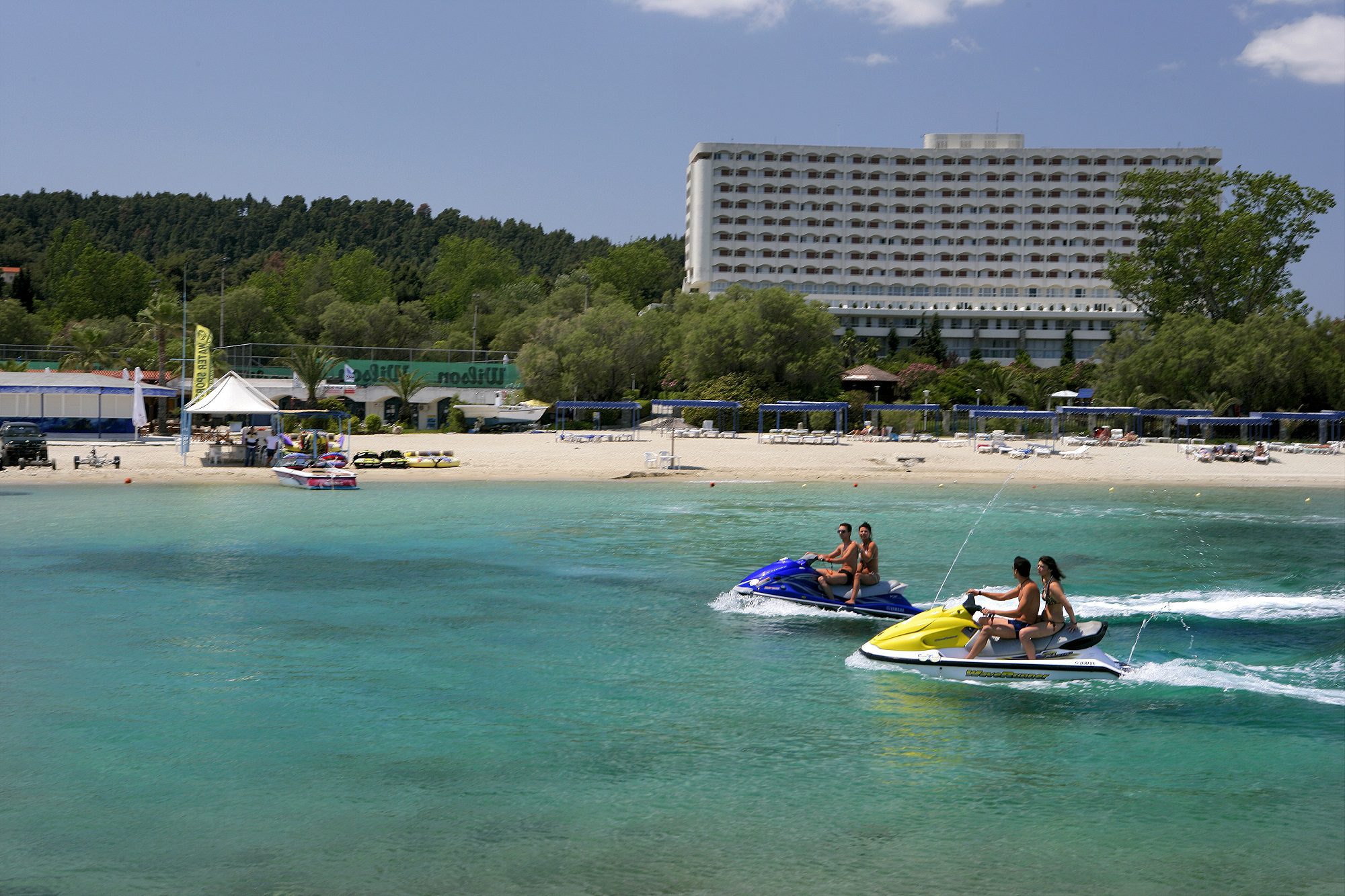Частният плаж на Athos Palace е с площ от над 1000 м, награден е със Син флаг, а златните пясъци и тюркоазените води го правят идеален да се отпуснете и да се насладите на почивката си. Шезлонги, чадъри, плажни кърпи и басейн са на разположение на всички гости.