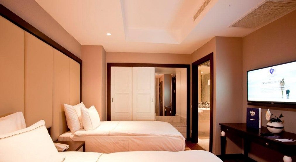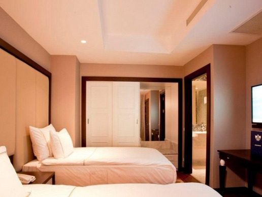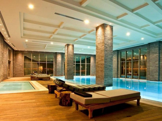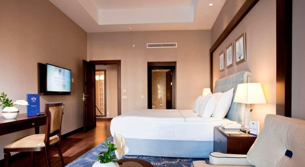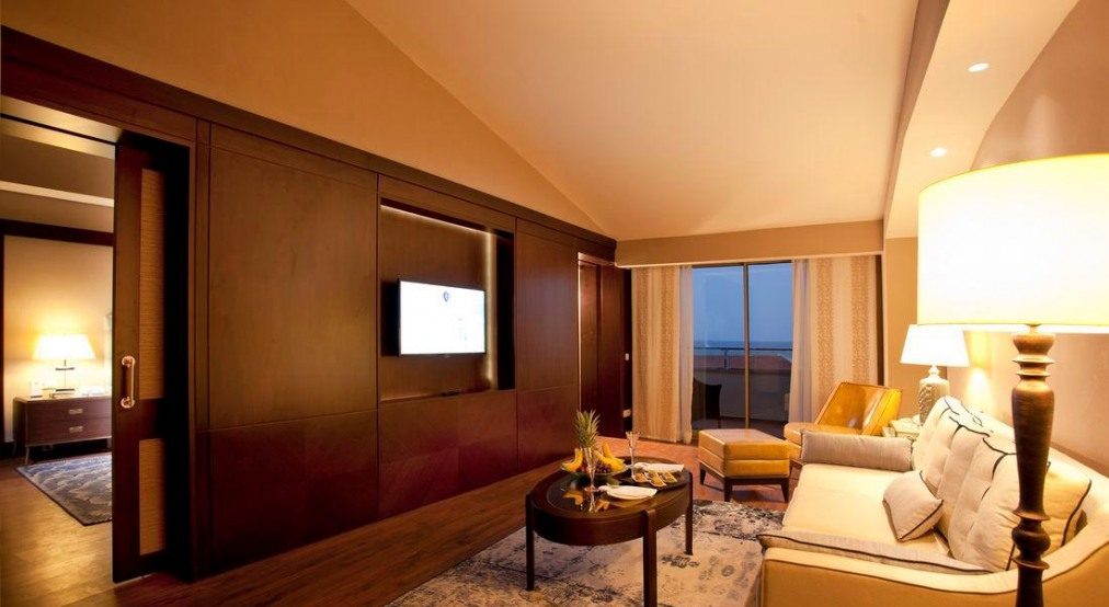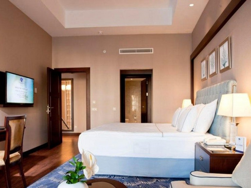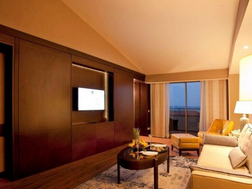 5 двуетажни Palazzo Mansions 4 bedrooms (изглед към басейна и голф игрището, на 1-ви етаж: коридор, всекидневна, музикална система, кухня, съблекалня, пералня и стая за гладене, отворена кухня, бар, зона за персонал, 2 стаи за персонала, офис, тоалетна, 2 тоалетни за гости, фитнес пилатес, сауна, парна баня, йога тераса, тераса, външна камина, частен отопляем басейн с прясна вода, частен басейн със солена вода, частен пясъчен плаж. на 2-ри етаж: зала със стълби , 2 master suite, съблекалня, баня, инфинити басейн, 2 детски стаи (с единични легла), външен душ, master suite балкон, макс. 10+2 души, 1000 m2, VIP обслужване);