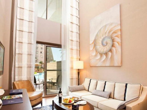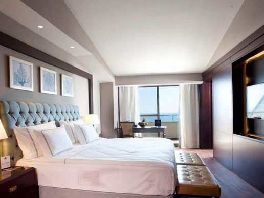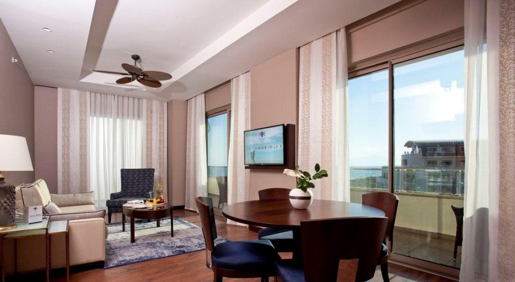 20 двустайни palazzo suite sea view (гледка към морето и басейна, хол, спалня с врата, 2 бани: едната е с баня с хидромасажни функции и душ, едната с душ, балкон или тераса с шезлонги, максимум 3 + 1 души, 108 м2).