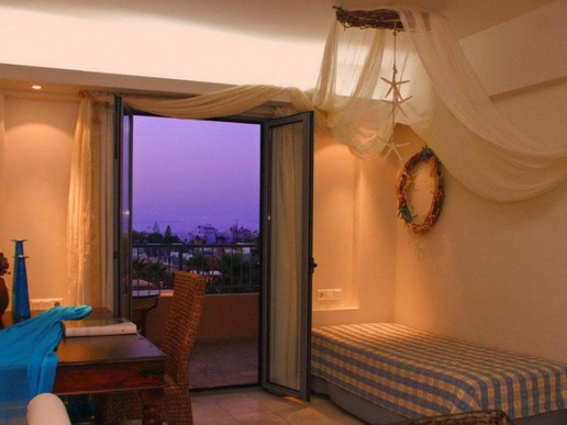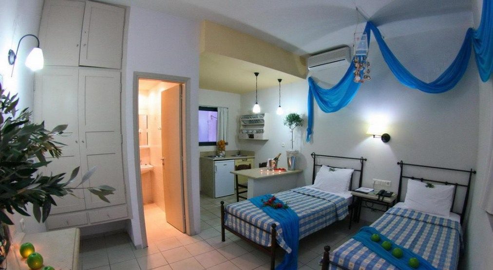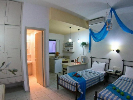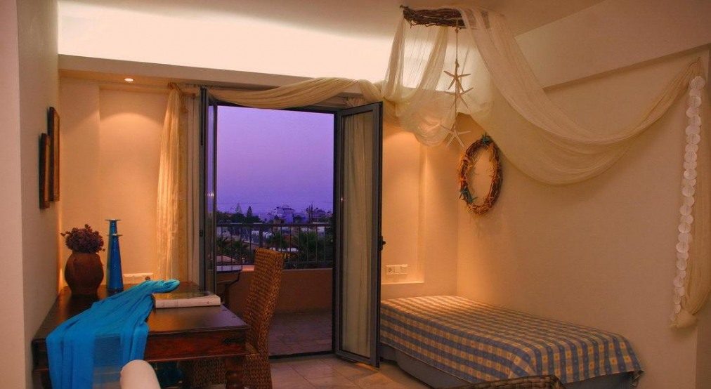 Компактна, но добре обзаведена територия, романтично обзаведени стаи. Успешната комбинация от спокойна атмосфера с близостта на известния нощен живот на курорта Малия. Препоръчителен за спокойна, романтична почивка на двойки и семейства без деца.