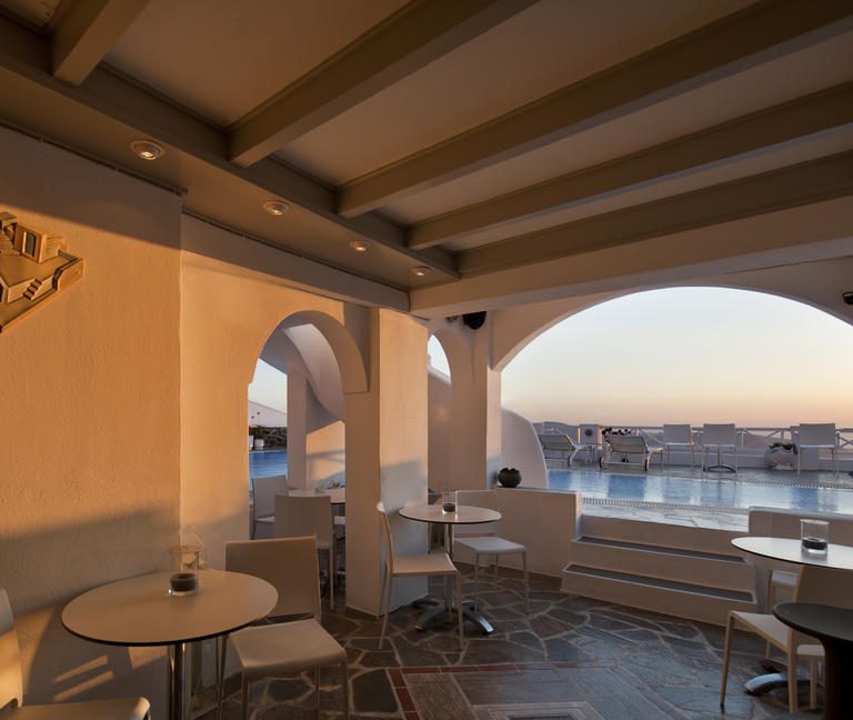 Хотелът е разположен от скалната страна на село Имеровигли, само на 2 км от град Фира, с панорамна гледка към Калдера.