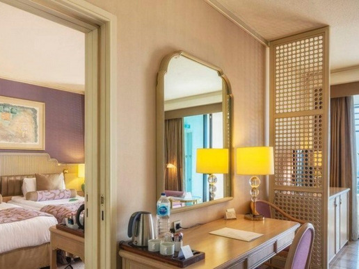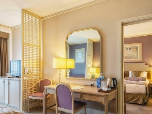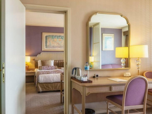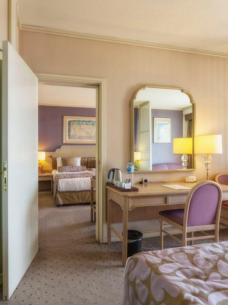 2 двустайни deluxe suite (хол, заседателна маса за 6 чов. , спалня с врата, макс. 2+2 деца, 80 м2; 8 м2 балкон);