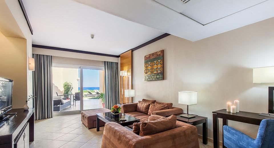 Junior Suite (pool, sea view, макс 3+1 чов. , спалня (без разделяща врата), гостна, душ, балкон или тераса, 85 м2);